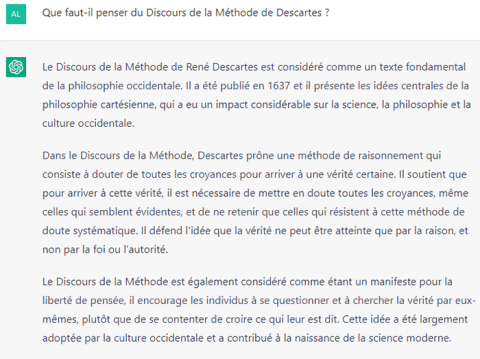 ChatGPT peut aussi largement être l'allié des pédagogues. Il sera par exemple aisé de créer des quiz, des QCM, des dictées en utilisant l'outil d'OpenAI. Au-delà, j'aimerais ici proposer d'inverser les rôles et de placer l'étudiant en « correcteur » des réponses de ChatGPT afin de le faire réfléchir sur les prompts et les éléments, voire arguments, amenés par ChatGPT :