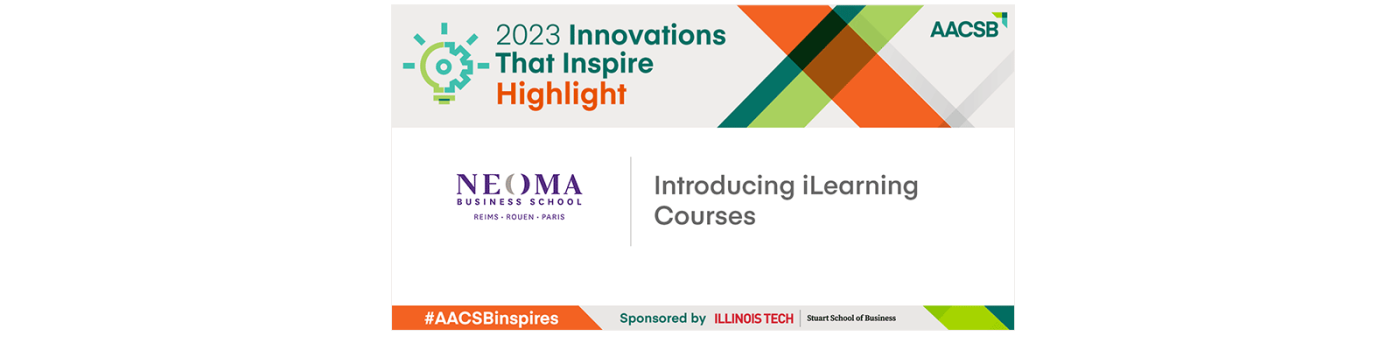 Décerné par le prestigieux organisme américain qui place l’innovation au cœur de ses processus d’accréditations, le prix « Innovations that Inspire » d’AACSB reconnaît NEOMA comme faisant partie des 25 meilleures institutions mondiales en matière d’innovation pédagogique. C’est avec ses cours en Interactive Learning (ou iLearning), scénarisés et interactifs, que l’Ecole s’est illustrée dans ce challenge international. NEOMA remporte ce prix pour la 3e fois et conforte son statut d’Ecole pionnière en matière d’innovation pédagogique.