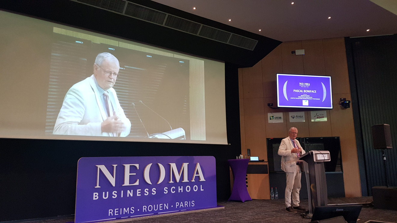 En une heure, Pascal Boniface, directeur de l’IRIS (Institut de relations internationales et stratégiques) a su expliquer avec beaucoup de clarté les principaux enjeux géopolitiques de notre monde. Que ce soit les conséquences de la guerre en Ukraine et de la place de la Russie à l'issue du conflit ; le fossé qui se creuse entre l’Occident et le reste du monde ; le clivage Chine-Etats-Unis. Celui qui est aussi directeur de l’IRIS Sup’, l’école de la géopolitique partenaire de NEOMA, a rappelé qu’il était aujourd’hui indispensable de comprendre la complexité du monde, non seulement pour être un professionnel, mais aussi un citoyen éclairé.