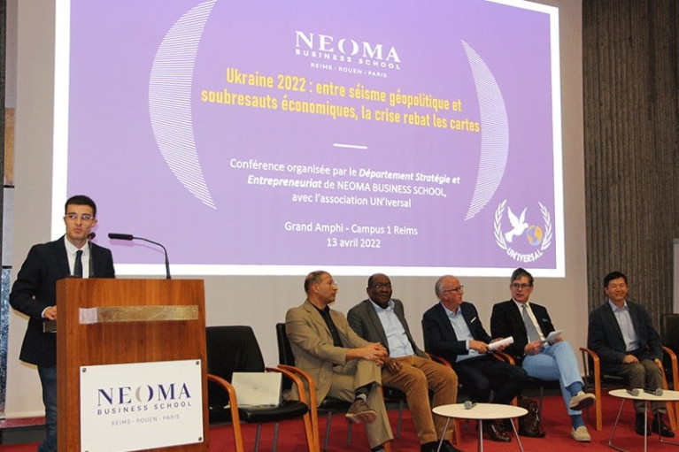 Le 13 avril 2022, sur le campus de Reims de NEOMA, la conférence « Ukraine 2022 : entre séisme géopolitique et soubresauts économiques, la crise rebat les cartes » a apporté un éclairage sur les répercussions de la guerre sur les deux pays concernés, sur l’Europe et sur le monde.