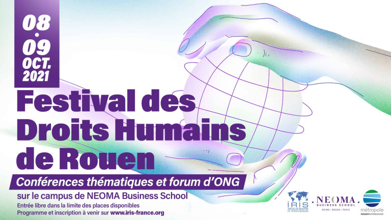 La première édition du Festival des Droits Humains de Rouen se tiendra les 8 et 9 octobre prochains. Co-organisé par l’Institut de relations internationales et stratégiques (IRIS), NEOMA Business School, la Métropole Rouen Normandie et la CCI Rouen Métropole, l’événement se destine au grand public de la Métropole de Rouen et d’ailleurs, mais aussi aux lycéens et aux étudiants. Le Festival s’articulera autour de 4 tables rondes thématiques animées par des experts et dédiées aux enjeux et défis pour les Droits humains. En marge des tables rondes, les visiteurs pourront participer à un forum d’ONG rassemblant des acteurs associatifs nationaux comme internationaux spécialisés sur les droits humains. Cette manifestation s’inscrit dans le cadre du partenariat qui lie l’IRIS et NEOMA Business School et se tiendra sur le campus de l’École situé à Mont-Saint-Aignan.